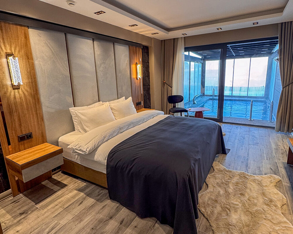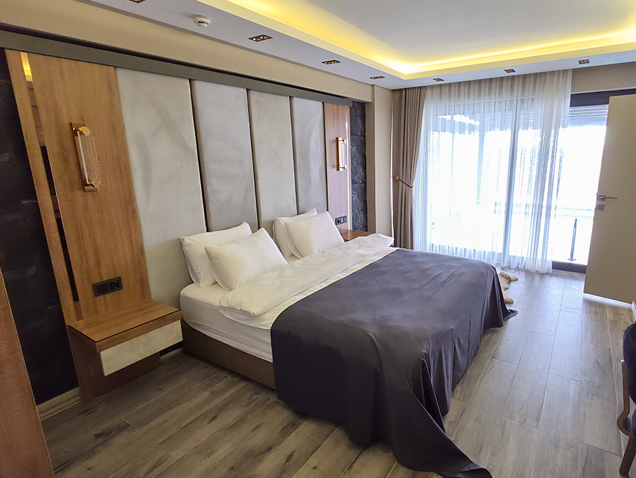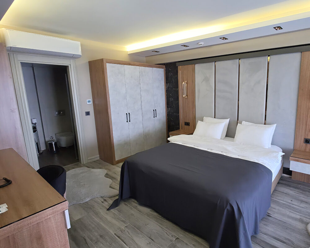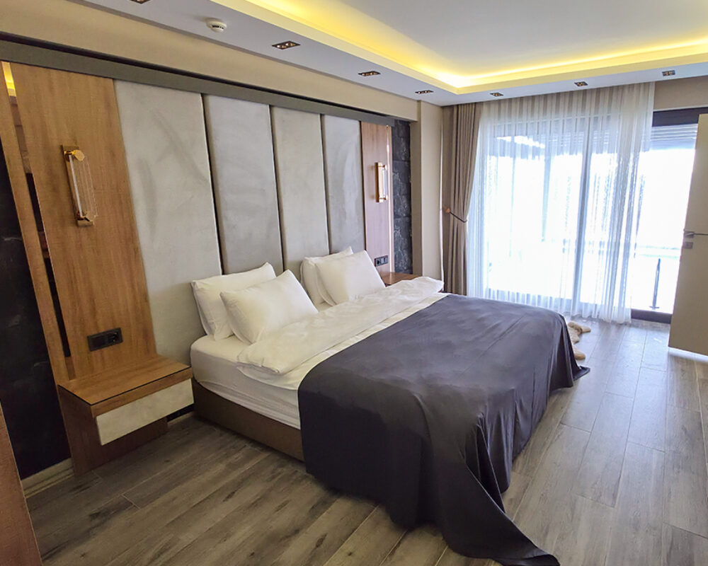 Dağ manzarasına uyanacağınız, günün yorgunluğunu atmanız için ergonomik ve şık detaylarla tasarlanmış odalarımızda evinizin sıcaklığını 5 yıldız konforuyla buluşturuyoruz.