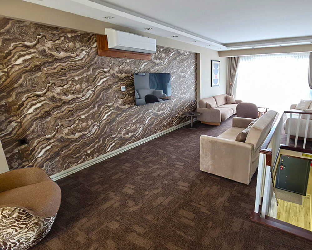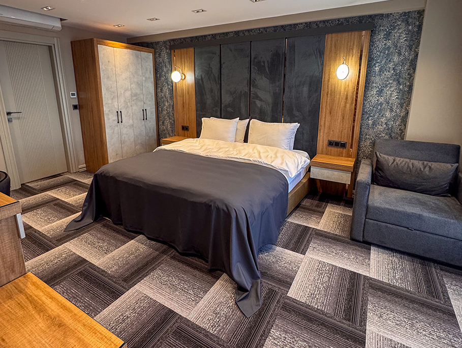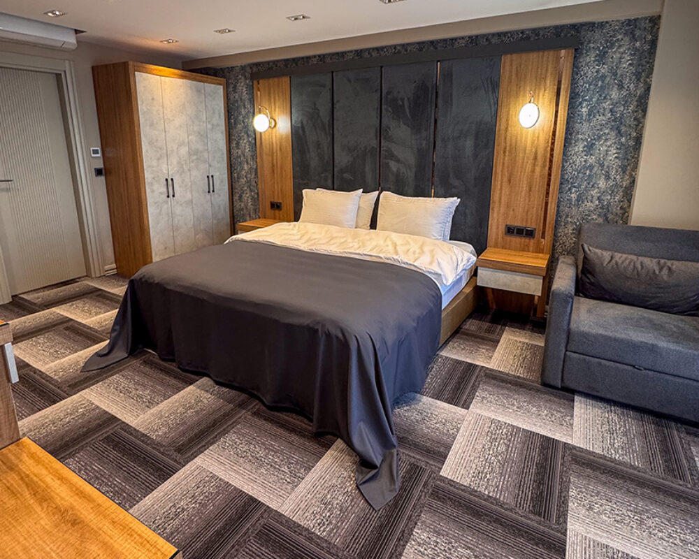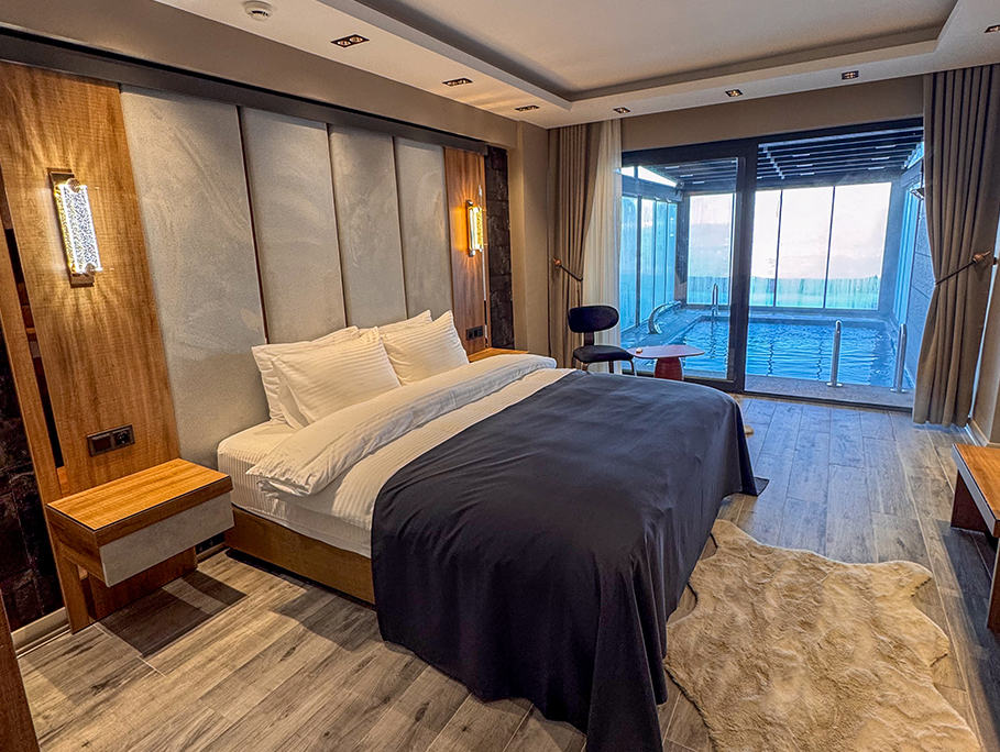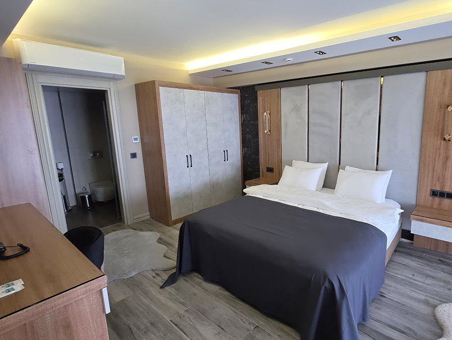 Dağ manzarasına uyanacağınız, günün yorgunluğunu atmanız için ergonomik ve şık detaylarla tasarlanmış odalarımızda evinizin sıcaklığını 5 yıldız konforuyla buluşturuyoruz.