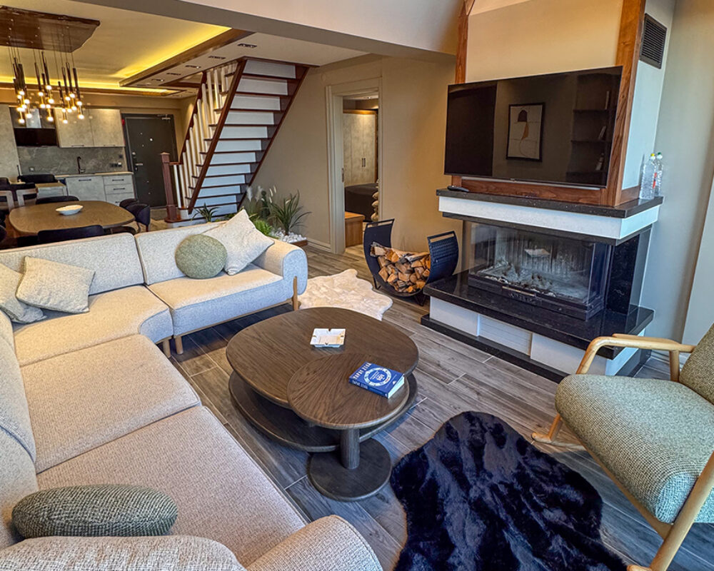 • Yaşam Alanı İçinde Doğal Odun Şöminesi Mevcuttur.