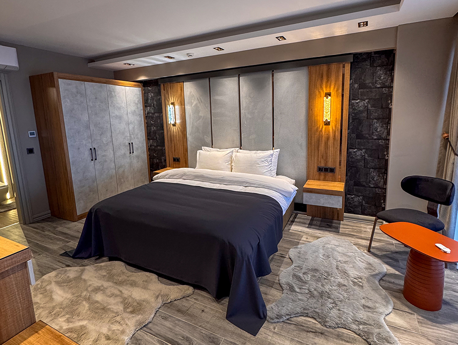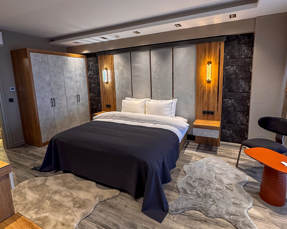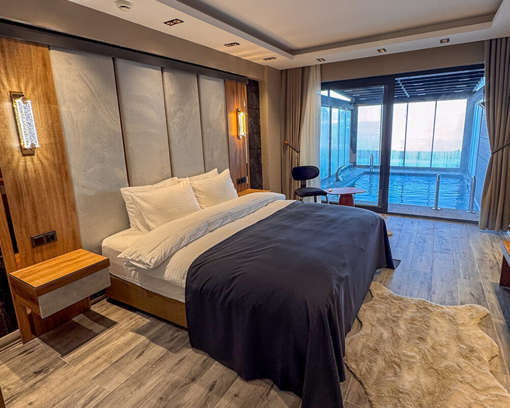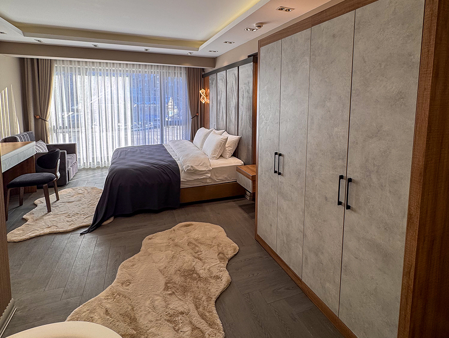 Dağ manzarasına uyanacağınız, günün yorgunluğunu atmanız için ergonomik ve şık detaylarla tasarlanmış odalarımızda evinizin sıcaklığını 5 yıldız konforuyla buluşturuyoruz.