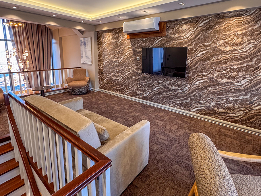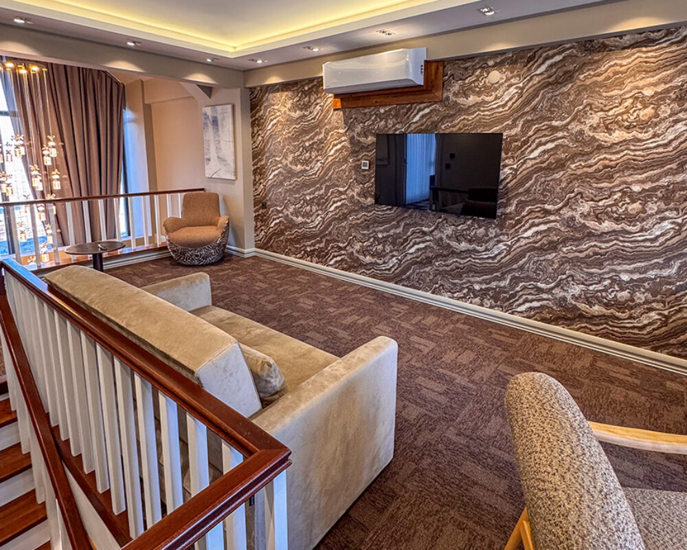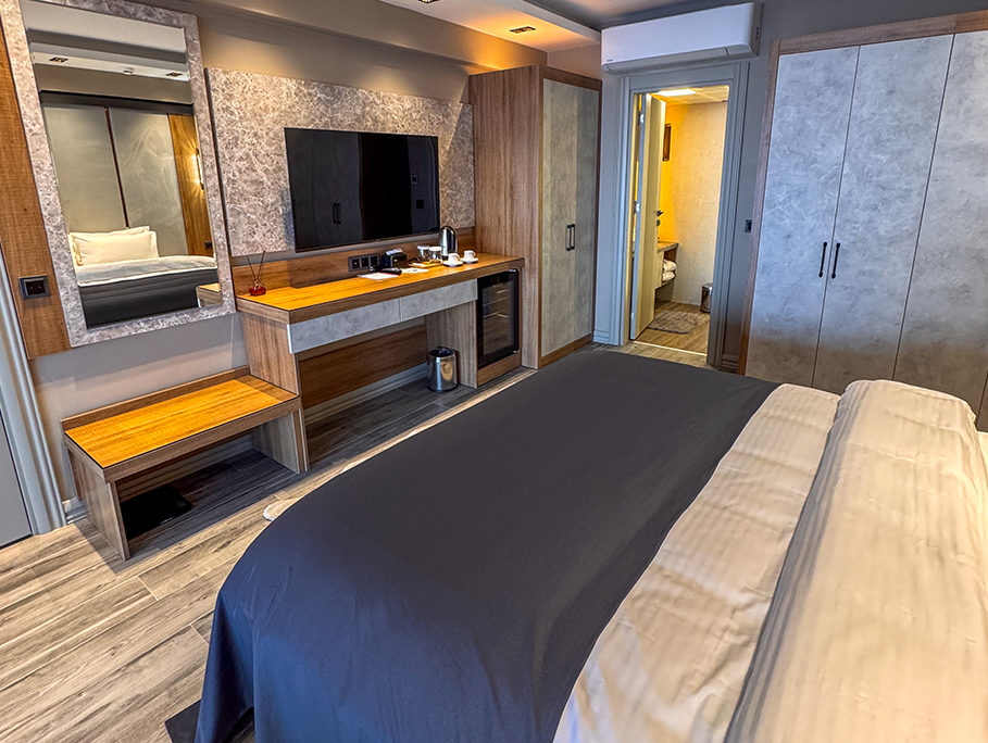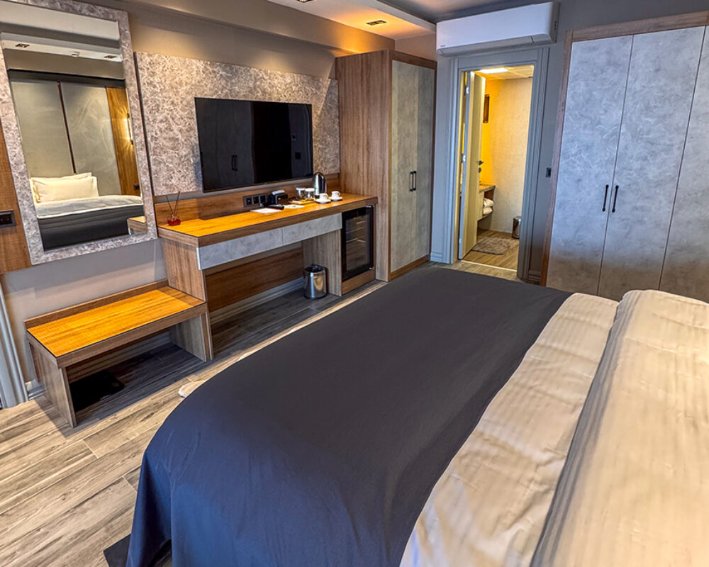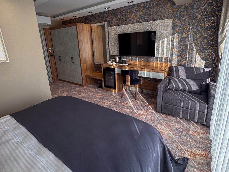 Dağ manzarasına uyanacağınız, günün yorgunluğunu atmanız için ergonomik ve şık detaylarla tasarlanmış odalarımızda evinizin sıcaklığını 5 yıldız konforuyla buluşturuyoruz.