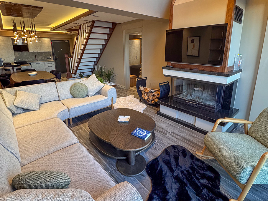• Yaşam Alanı İçinde Doğal Odun Şöminesi Mevcuttur.